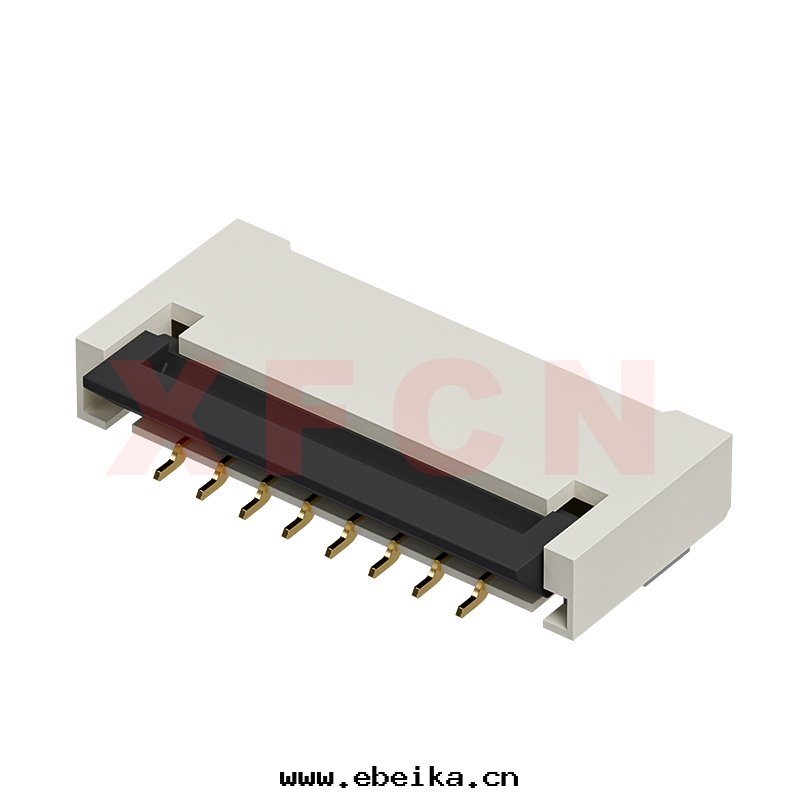 描述:FPC-1.0mm間(jiān)距,卧貼后压式双(shuāng)面(miàn)接,08位(wèi),高(gāo)度(dù)2.0mm,镀金(jīn)