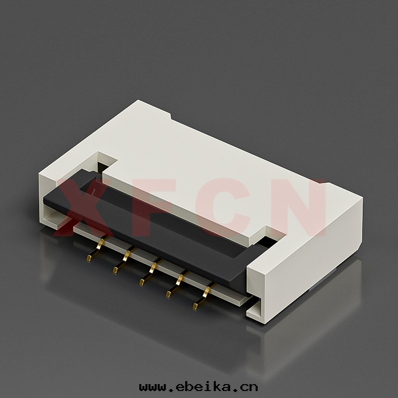 描述:FPC-1.0mm間(jiān)距,卧貼后压式双(shuāng)面(miàn)接,05位(wèi),高(gāo)度(dù)2.0mm,镀金(jīn)