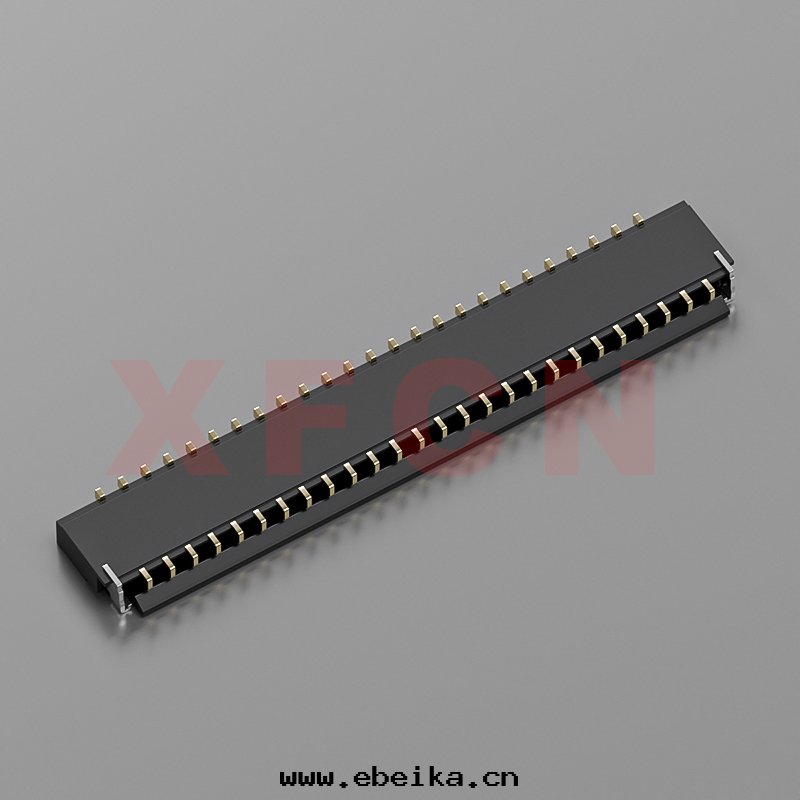 描述:FPC-0.3mm間(jiān)距,卧貼掀盖式下(xià)接觸,51位(wèi),高(gāo)度(dù)1.0mm ,镀金(jīn)