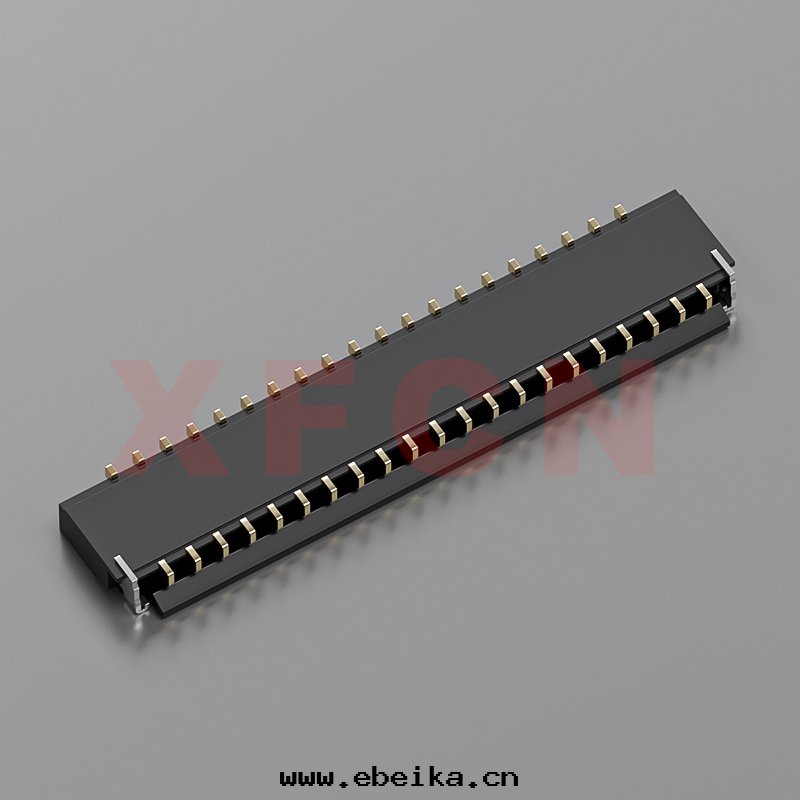 描述:FPC-0.3mm間(jiān)距,卧貼掀盖式下(xià)接觸,41位(wèi),高(gāo)度(dù)1.0mm ,镀金(jīn)