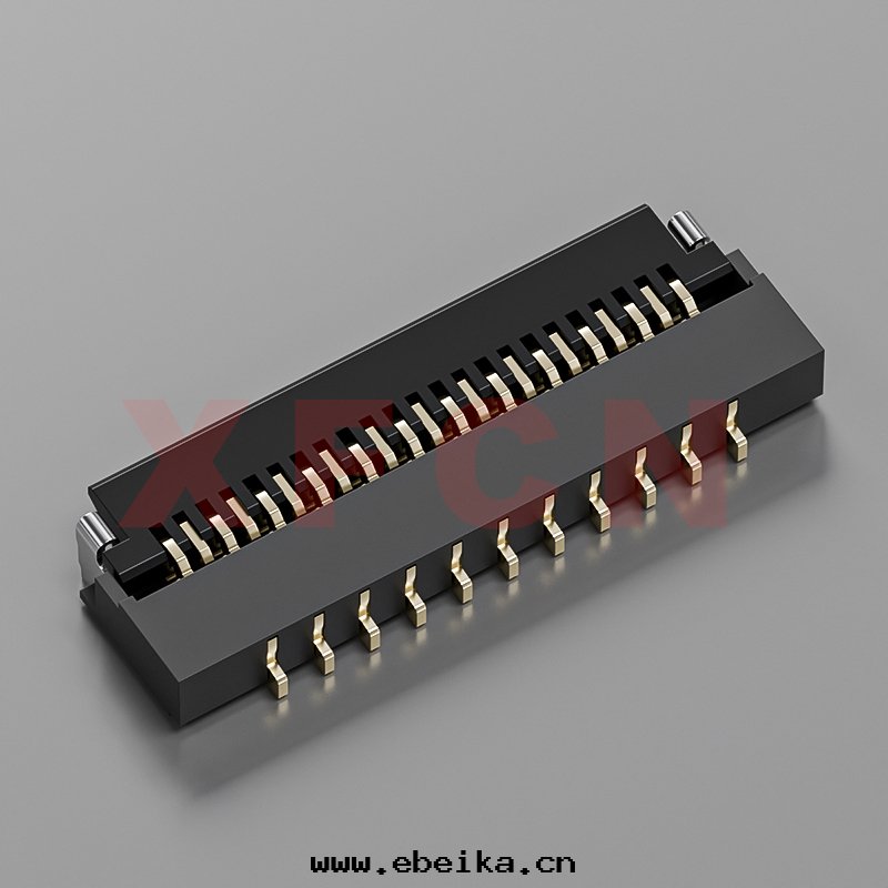 描述:FPC-0.3mm間(jiān)距,卧貼掀盖式下(xià)接觸,23位(wèi),高(gāo)度(dù)1.0mm ,镀金(jīn)