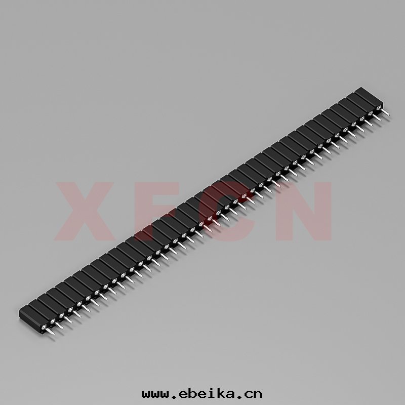 描述:圆(yuán)孔排母-2.54mm間(jiān)距,180°,DIP,40位(wèi),單排母座,H=7.0mm
