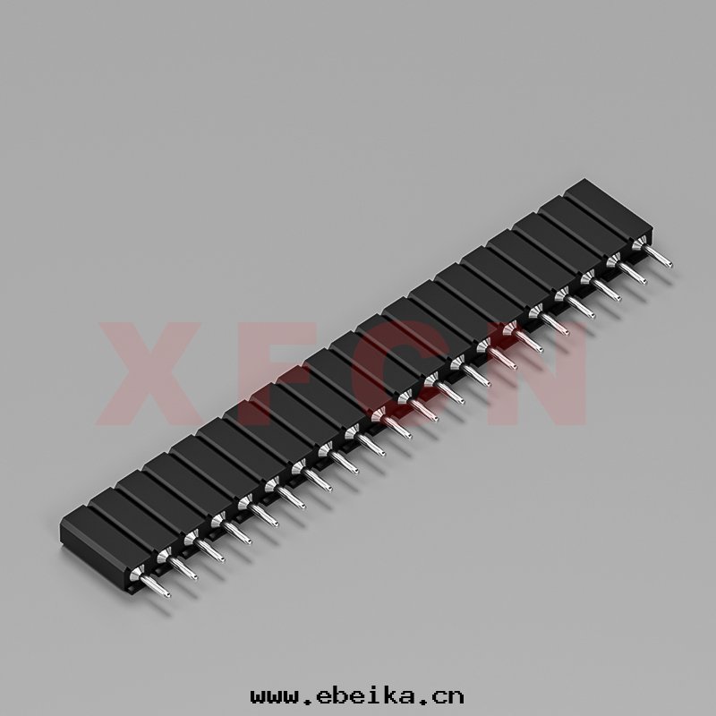 描述:圆(yuán)孔排母-2.54mm間(jiān)距,180°,DIP,20位(wèi),單排母座,H=7.0mm