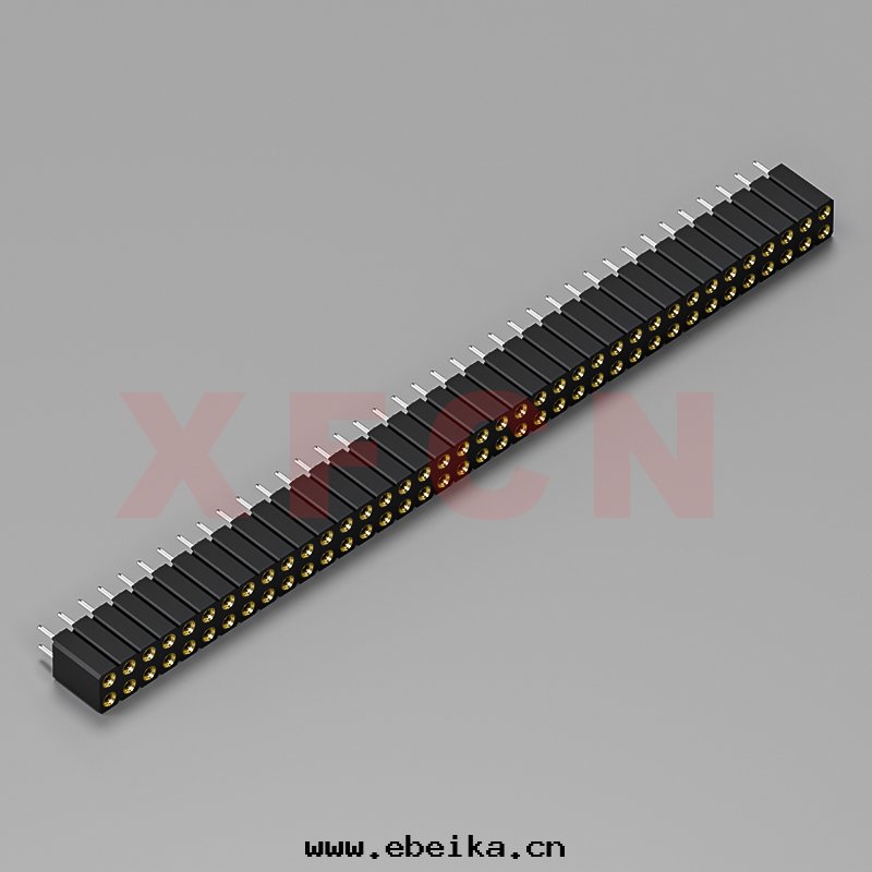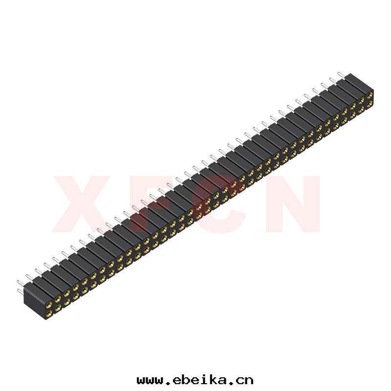 描述:圆(yuán)孔排母-2.54mm間(jiān)距,180°,DIP,76位(wèi),双(shuāng)排母座,H=7.0mm