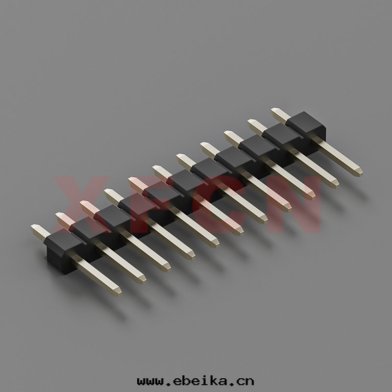 描述:排针-2.54mm間(jiān)距,180°,DIP,11位(wèi),單排單塑