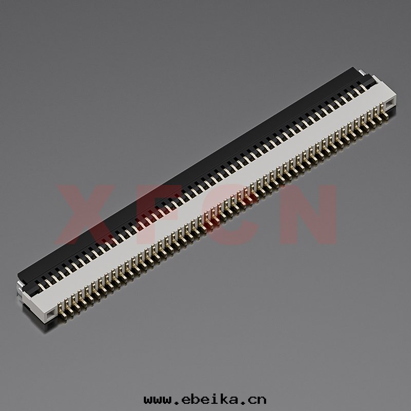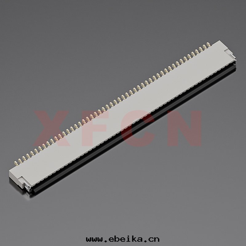 描述:FPC-0.5mm間(jiān)距,卧貼掀盖式下(xià)接觸,50位(wèi),高(gāo)度(dù)1.0mm ,镀金(jīn)