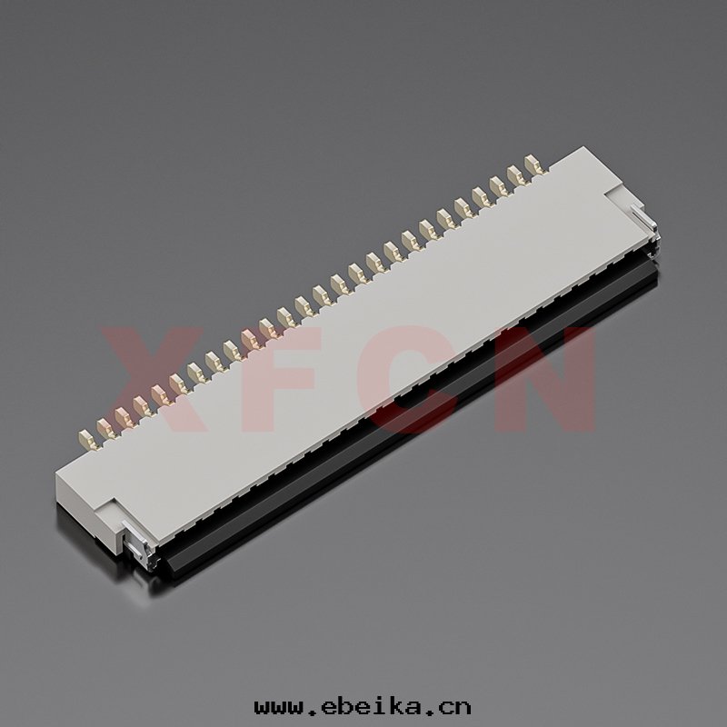 描述:FPC-0.5mm間(jiān)距,卧貼掀盖式下(xià)接觸,26位(wèi),高(gāo)度(dù)1.0mm ,镀金(jīn)