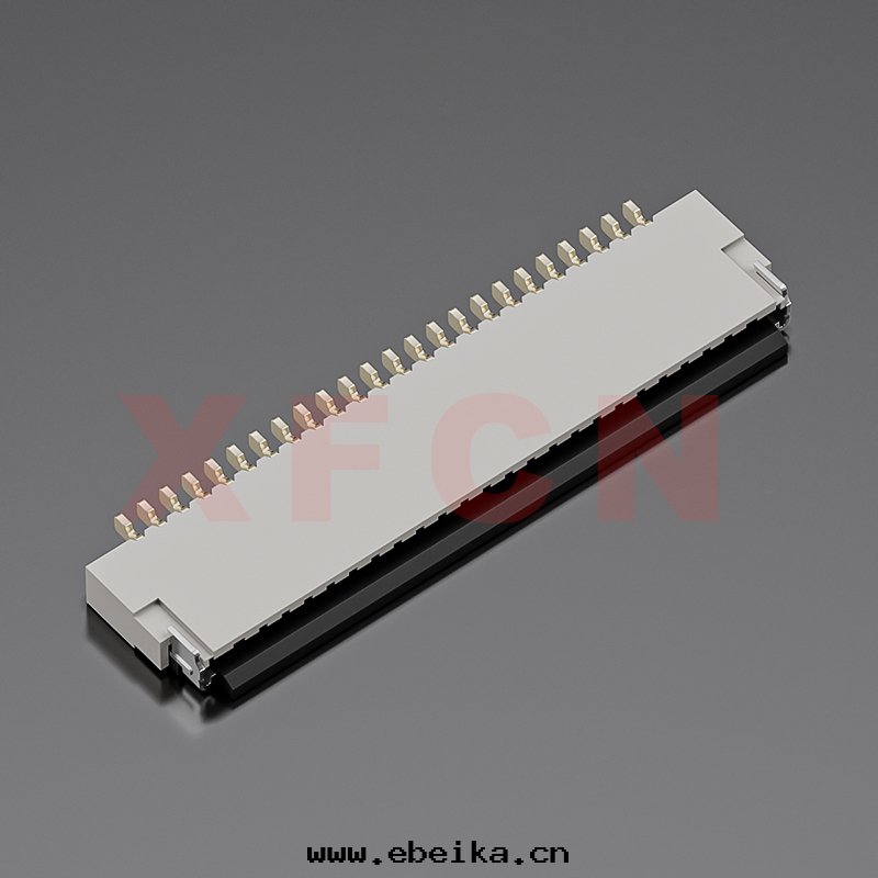 描述:FPC-0.5mm間(jiān)距,卧貼掀盖式下(xià)接觸,24位(wèi),高(gāo)度(dù)1.0mm ,镀金(jīn)
