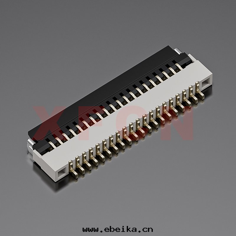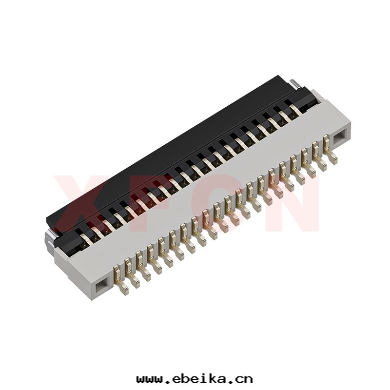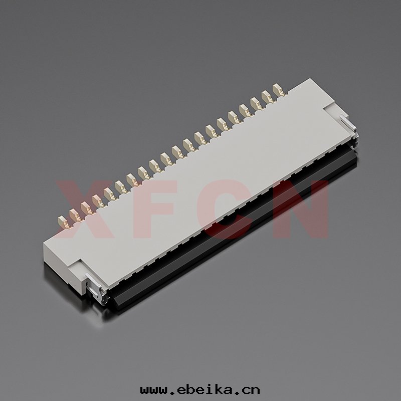 描述:FPC-0.5mm間(jiān)距,卧貼掀盖式下(xià)接觸,20位(wèi),高(gāo)度(dù)1.0mm ,镀金(jīn)