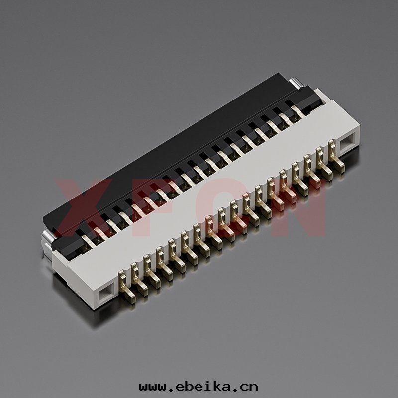 描述:FPC-0.5mm間(jiān)距,卧貼掀盖式下(xià)接觸,18位(wèi),高(gāo)度(dù)1.0mm ,镀金(jīn)