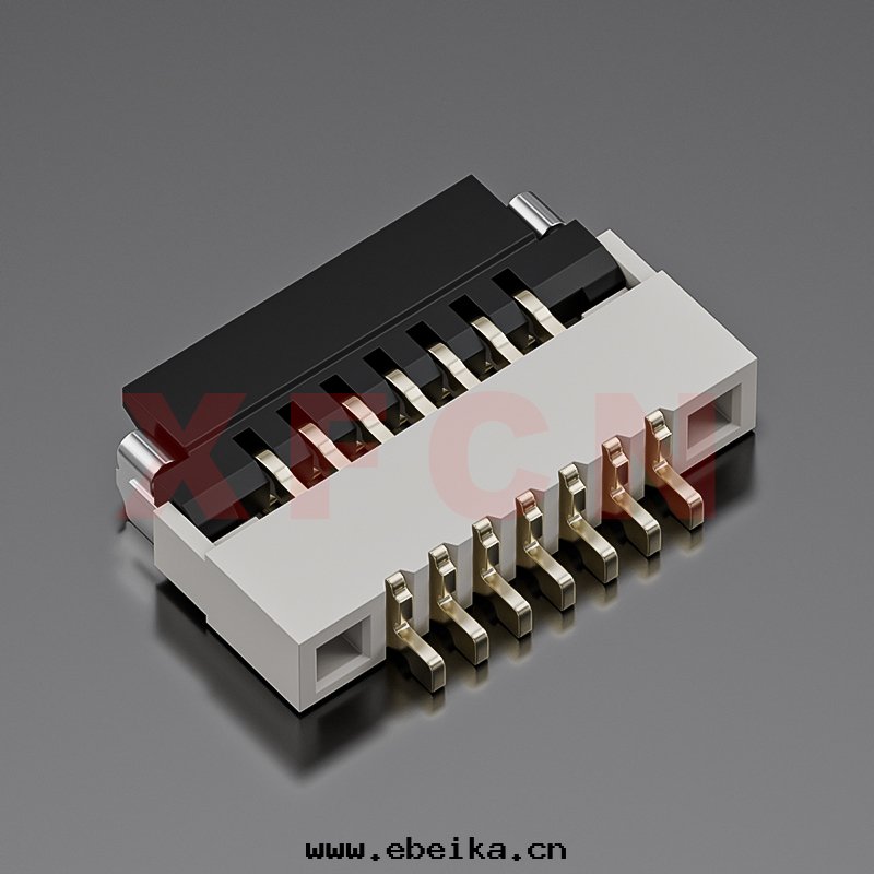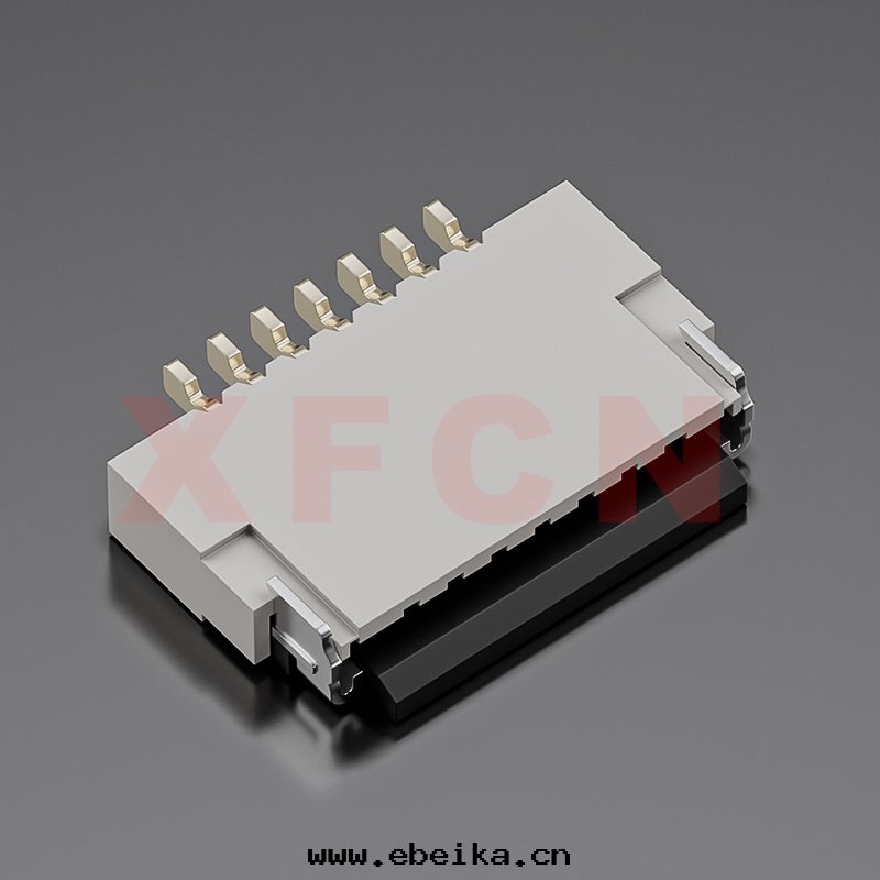 描述:FPC-0.5mm間(jiān)距,卧貼掀盖式下(xià)接觸,07位(wèi),高(gāo)度(dù)1.0mm ,镀金(jīn)