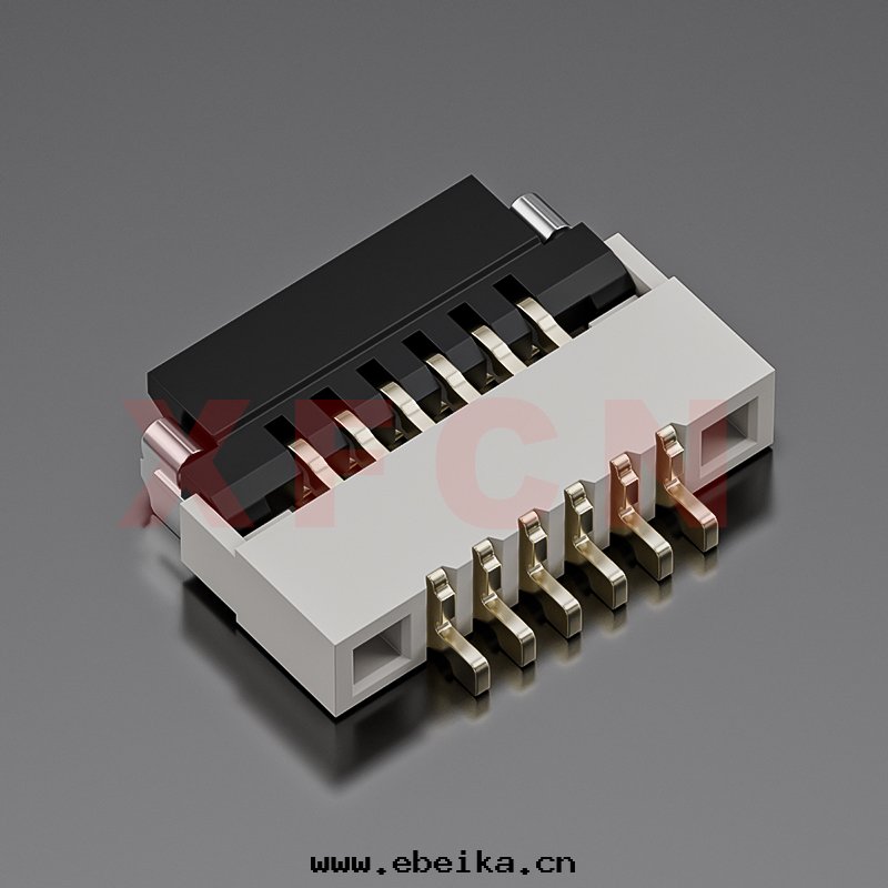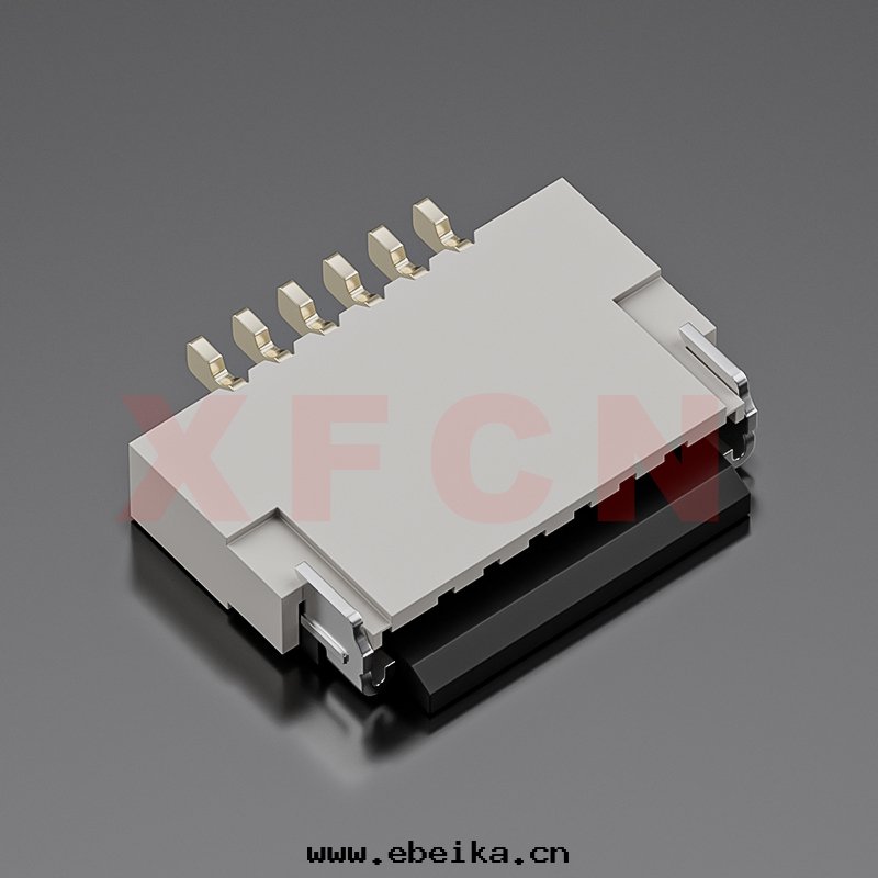 描述:FPC-0.5mm間(jiān)距,卧貼掀盖式下(xià)接觸,06位(wèi),高(gāo)度(dù)1.0mm ,镀金(jīn)