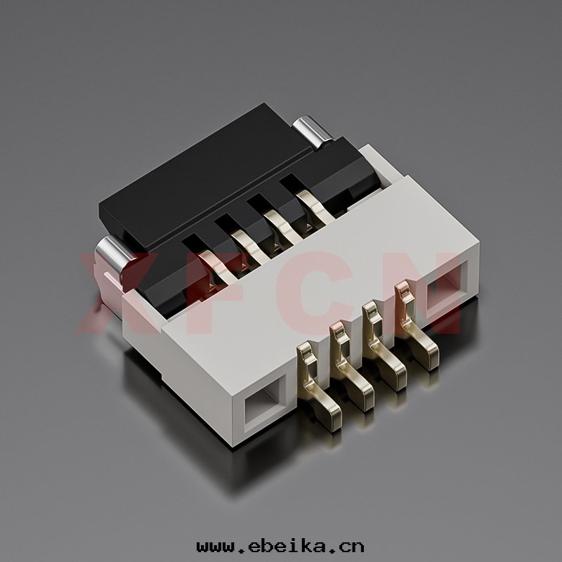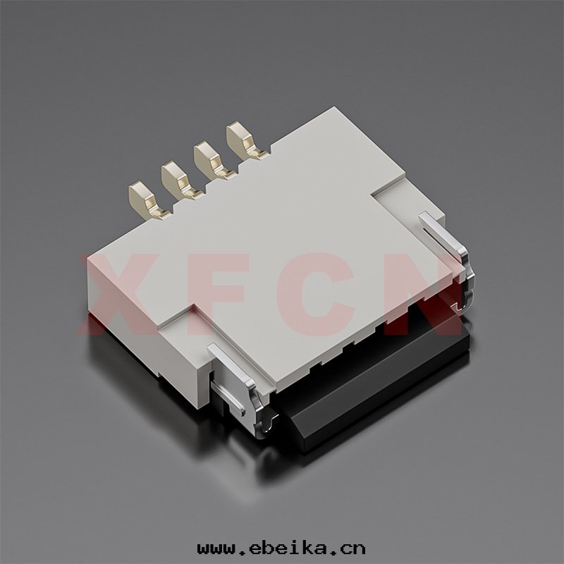 描述:FPC-0.5mm間(jiān)距,卧貼掀盖式下(xià)接觸,04位(wèi),高(gāo)度(dù)1.0mm ,镀金(jīn)