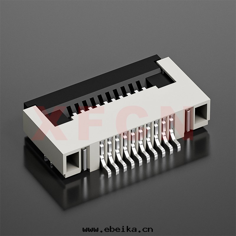 描述:FPC-0.5mm間(jiān)距,卧貼掀盖式下(xià)接觸,10位(wèi),高(gāo)度(dù)2.0mm