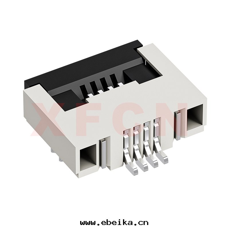 描述:FPC-0.5mm間(jiān)距,卧貼掀盖式下(xià)接觸,04位(wèi),高(gāo)度(dù)2.0mm