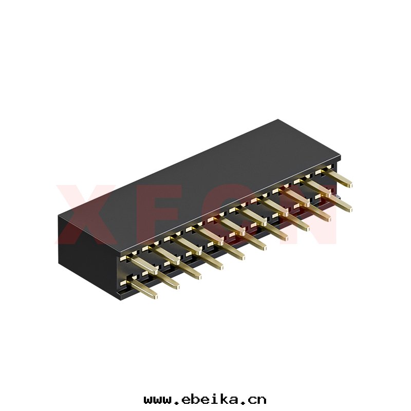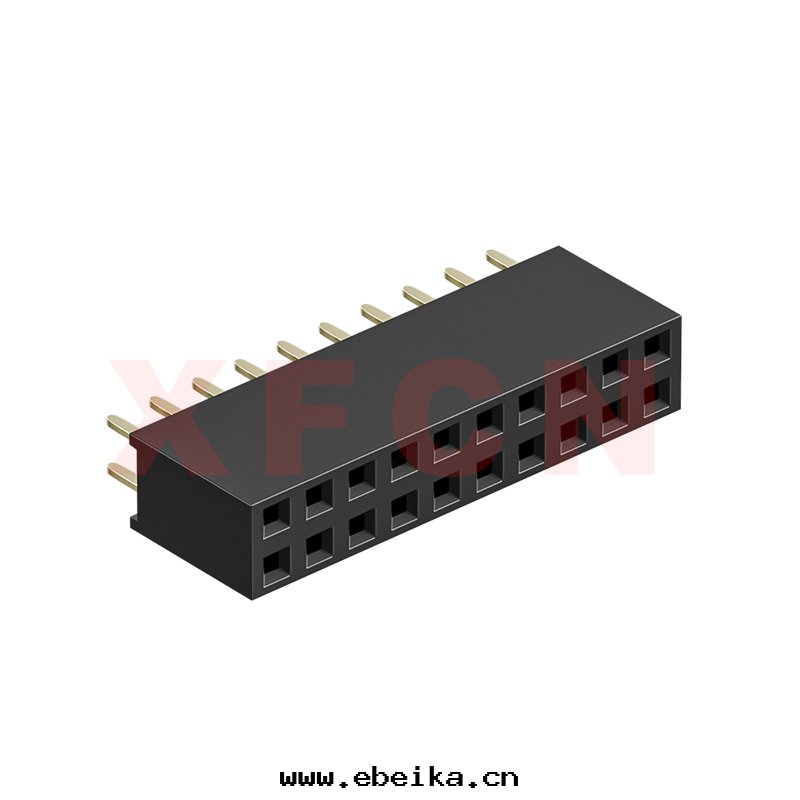 描述:排母-2.54mm間(jiān)距,180°,DIP,20位(wèi),双(shuāng)排,PBT,H=8.5mm