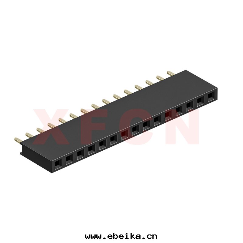 描述:排母-2.54mm間(jiān)距,180°,DIP,15位(wèi),單排,PBT,H=8.5mm