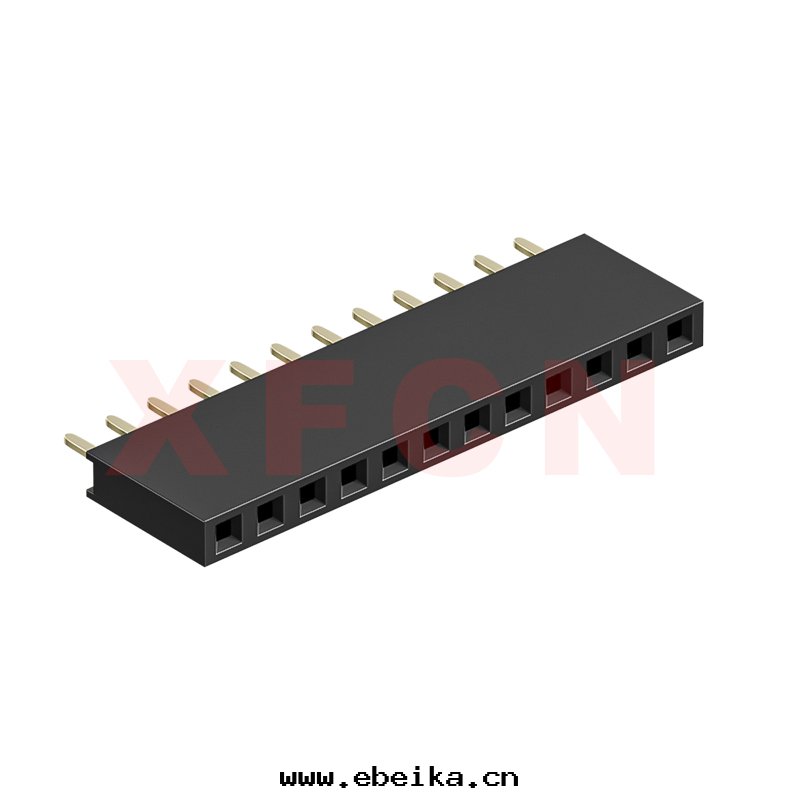 描述:排母-2.54mm間(jiān)距,180°,DIP,12位(wèi),單排,PBT,H=8.5mm