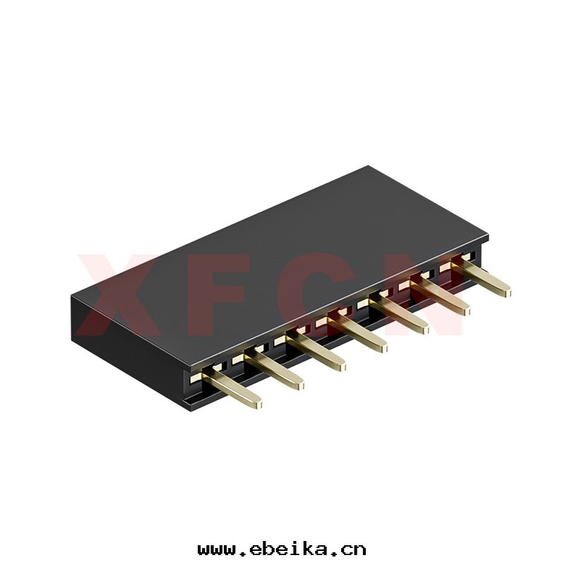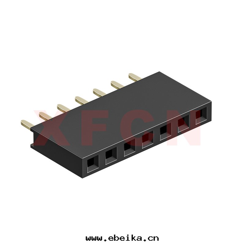 描述:排母-2.54mm間(jiān)距,180°,DIP,07位(wèi),單排,PBT,H=8.5mm