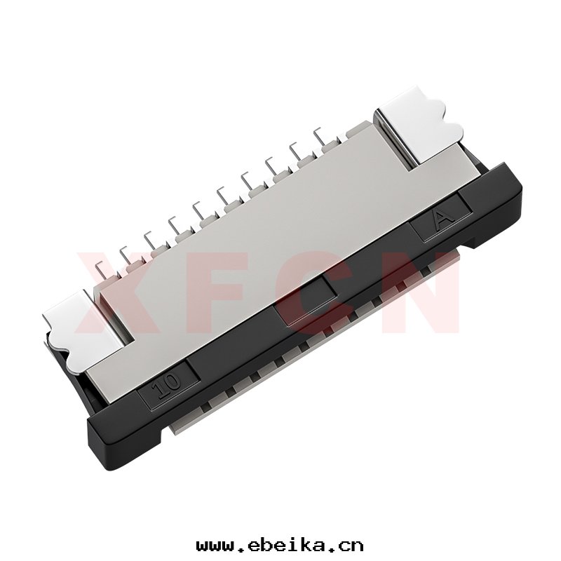 描述:FPC-1.0mm間(jiān)距,卧貼拉拔式下(xià)接觸,10位(wèi),高(gāo)度(dù)2.5mm,