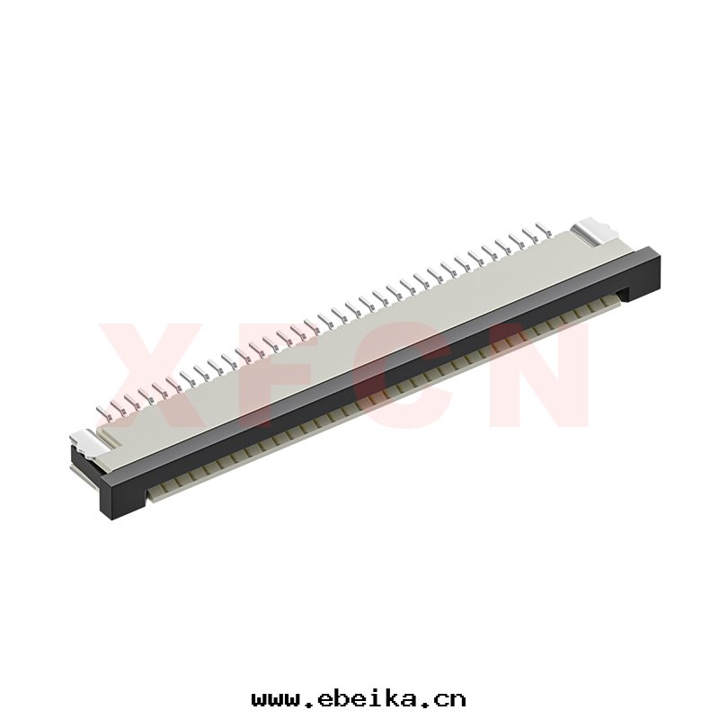 描述:FPC-1.0mm間(jiān)距,卧貼拉拔式上(shàng)接觸,33位(wèi),高(gāo)度(dù)2.5mm,