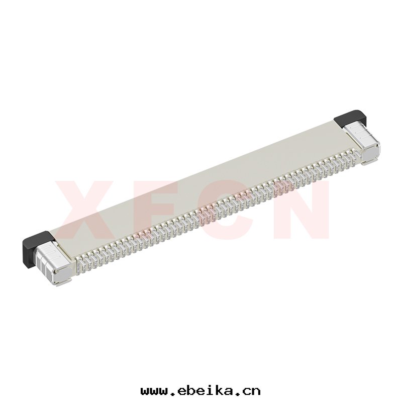 描述:FPC-0.5mm間(jiān)距,卧貼拉拔式下(xià)接觸,50位(wèi),高(gāo)度(dù)2.0mm
