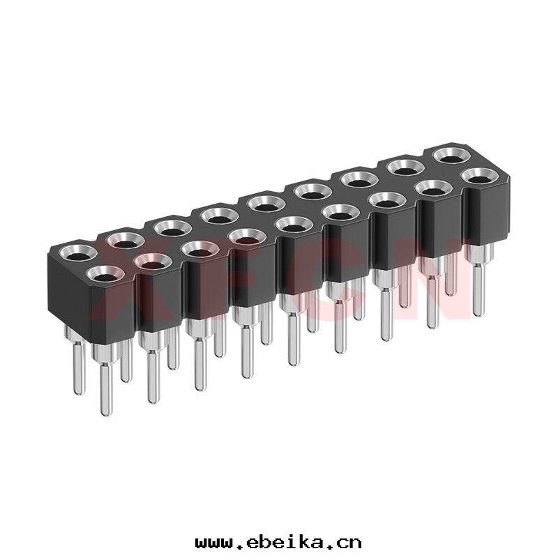 描述:圆(yuán)孔排母-2.54mm間(jiān)距,180°,DIP,18位(wèi),双(shuāng)排母座,H=3.0mm