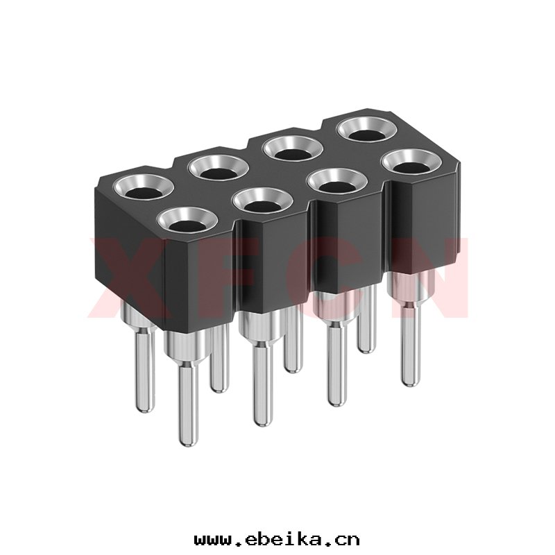 描述:圆(yuán)孔排母-2.54mm間(jiān)距,180°,DIP,08位(wèi),双(shuāng)排母座,H=3.0mm