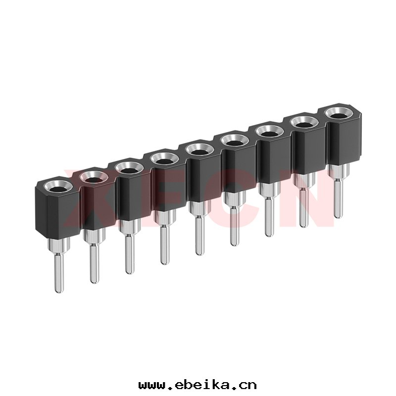 描述:圆(yuán)孔排母-2.54mm間(jiān)距,180°,DIP,09位(wèi),單排母座,H=3.0mm