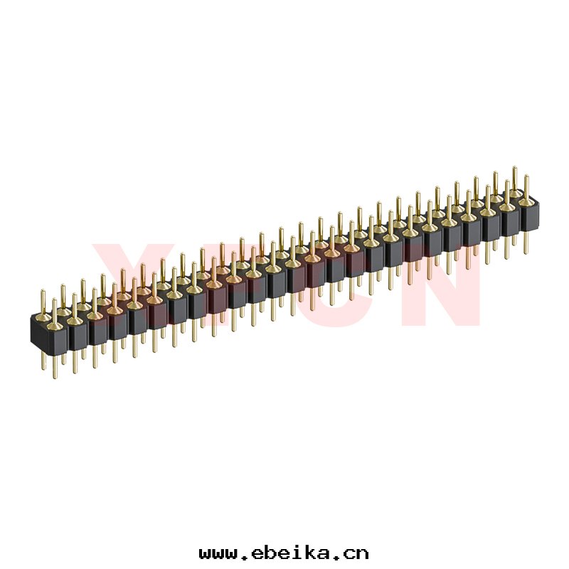 描述:圆(yuán)孔排针-2.54mm間(jiān)距,180°,DIP,50位(wèi),双(shuāng)排公(gōng)座,H=3.0mm