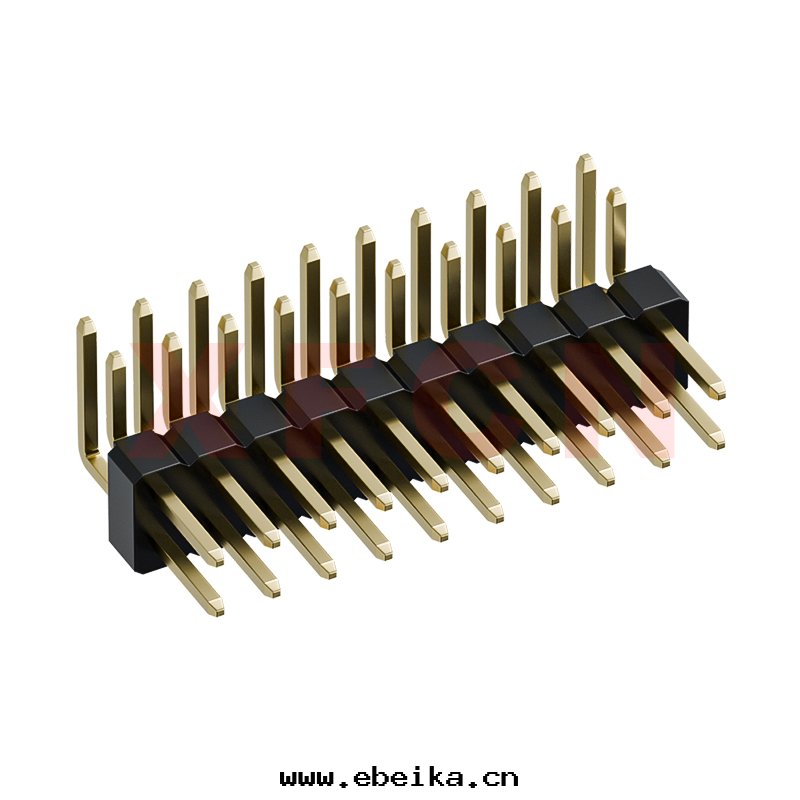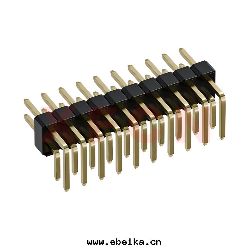 描述:排针-2.00mm間(jiān)距,90°,DIP,20位(wèi),双(shuāng)排單塑