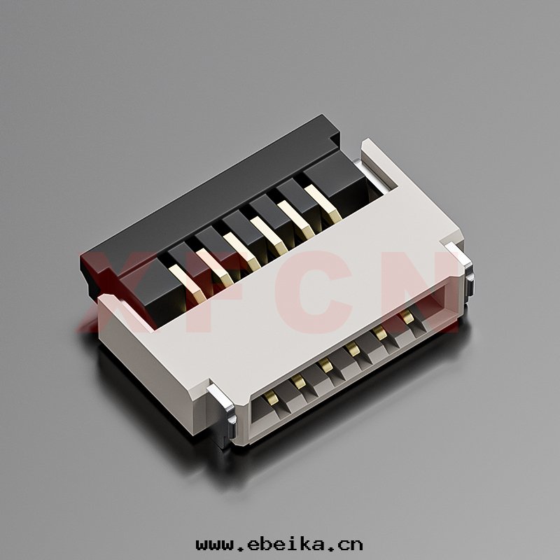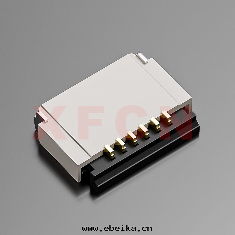 描述:FPC-0.5mm間(jiān)距,前插后掀,06位(wèi),高(gāo)度(dù)1.0mm, 镀金(jīn)