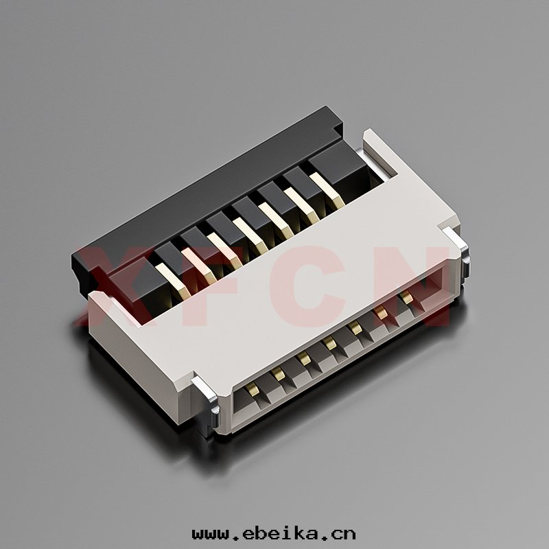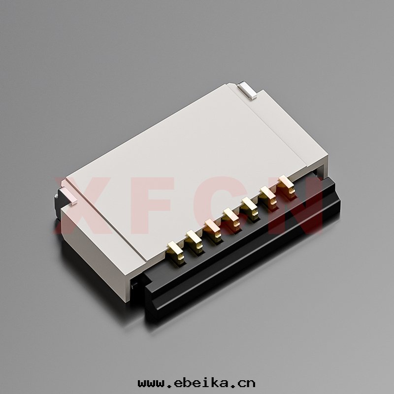 描述:FPC-0.5mm間(jiān)距,前插后掀,07位(wèi),高(gāo)度(dù)1.0mm, 镀金(jīn)