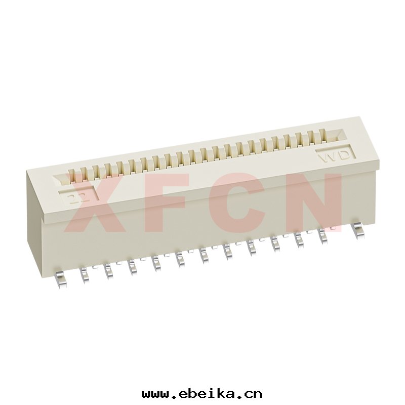 描述:FPC-0.5mm間(jiān)距,無盖式,立貼正(zhèng)腳(jiǎo),26位(wèi),高(gāo)度(dù)4.0mm,