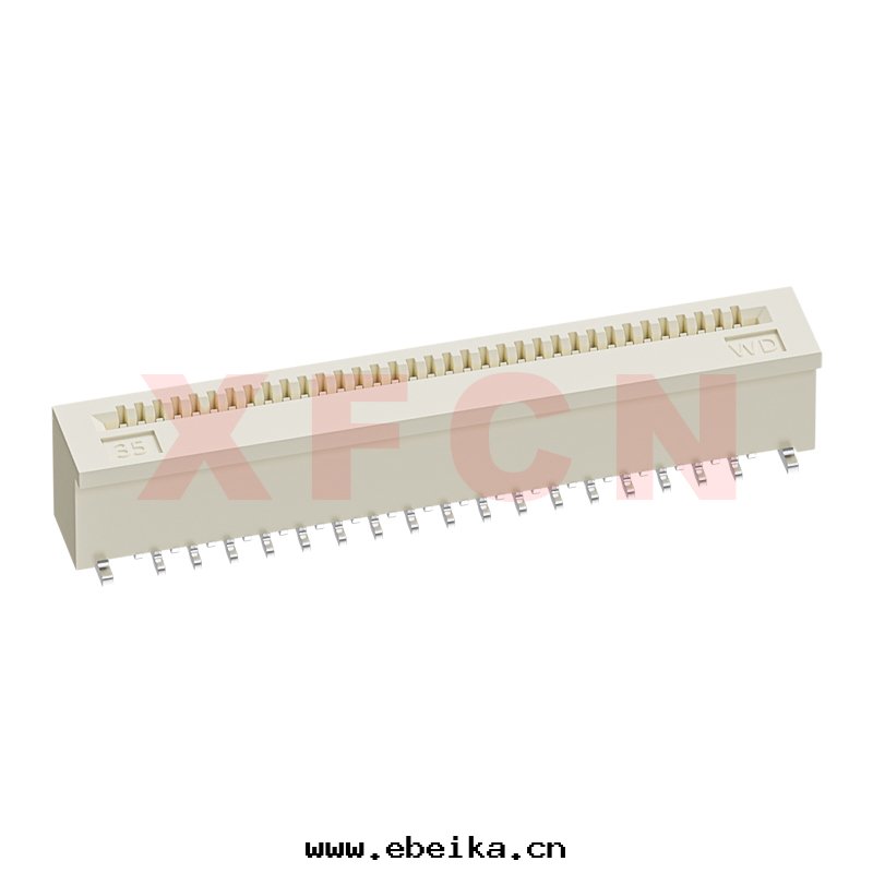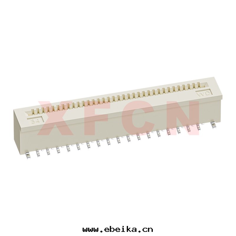 描述:FPC-0.5mm間(jiān)距,無盖式,立貼正(zhèng)腳(jiǎo),34位(wèi),高(gāo)度(dù)4.0mm,